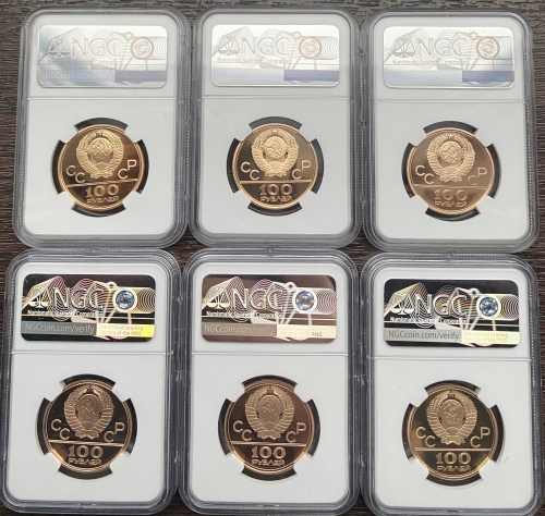 • Великолепный коллекционный набор золотых монет Олимпиада 80 100 рублей в слабах NGC PROOF 69 Ultra Cameo.Станет украшением Вашей коллекции и прекрасной инвестицией.