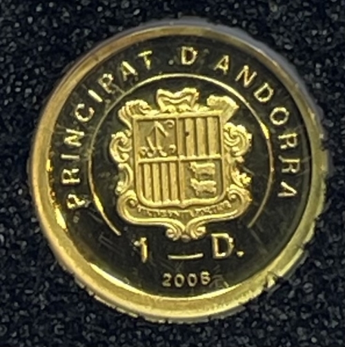 Золотая монета 1 динер Андорра 2008г., 0,5г., Au 999