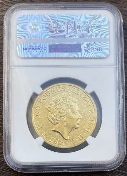 Золотая монета 100 Фунтов "Красный Дракон" 2017 года 31,1 г