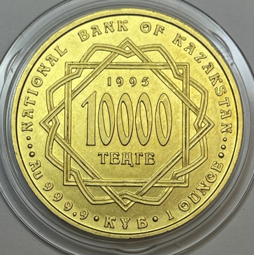 Золотая монета 10000 Тенге 1995 год "Шелковый путь" Казахстан, Au 999,9, 31,1г.