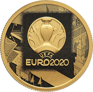 Золотая монета 50 рублей "Чемпионат Европы по футболу 2020 года (UEFA EURO 2020)" 7,78 г. " СПМД, 2021г. ПРУФ