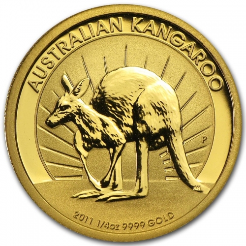 Золотая монета Австралии 25 долларов "Кенгуру" 1/4 унции , 7,78г., 2011г.