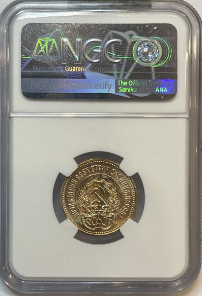 Золотая монета "Червонец Сеятель" 1975 года 8,6 грамм в слабе NGC MS 66