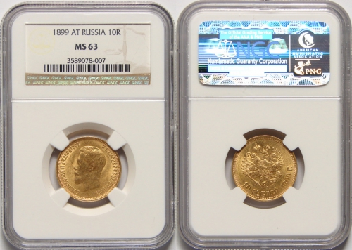 Вы всегда можете купить или продать, а также узнать текущую стоимость монеты - 'Золотая монета Николая II 10 рублей 1899 год состояние MS 63' в г.Абакан (Хакасия). У нас Вы получите полную и необходимую консультация от квалифицированных специалистов и профессионалов, работающих на рынке инвестиций в драгметаллы уже долгое время. Мы стараемся предложить нашим клиентам лучшие цены выкупа и продажи на рынке (с минимальным спредом), а также гарантируем конфиденциальность всех проводимых сделок.