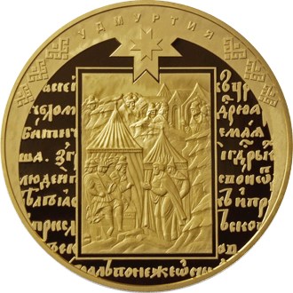 Золотая монета "Удмуртия" (к 450-летию добровольного вхождения Удмуртии в состав Российского государства) 10000 рублей 2008, 1 кг, Au 999